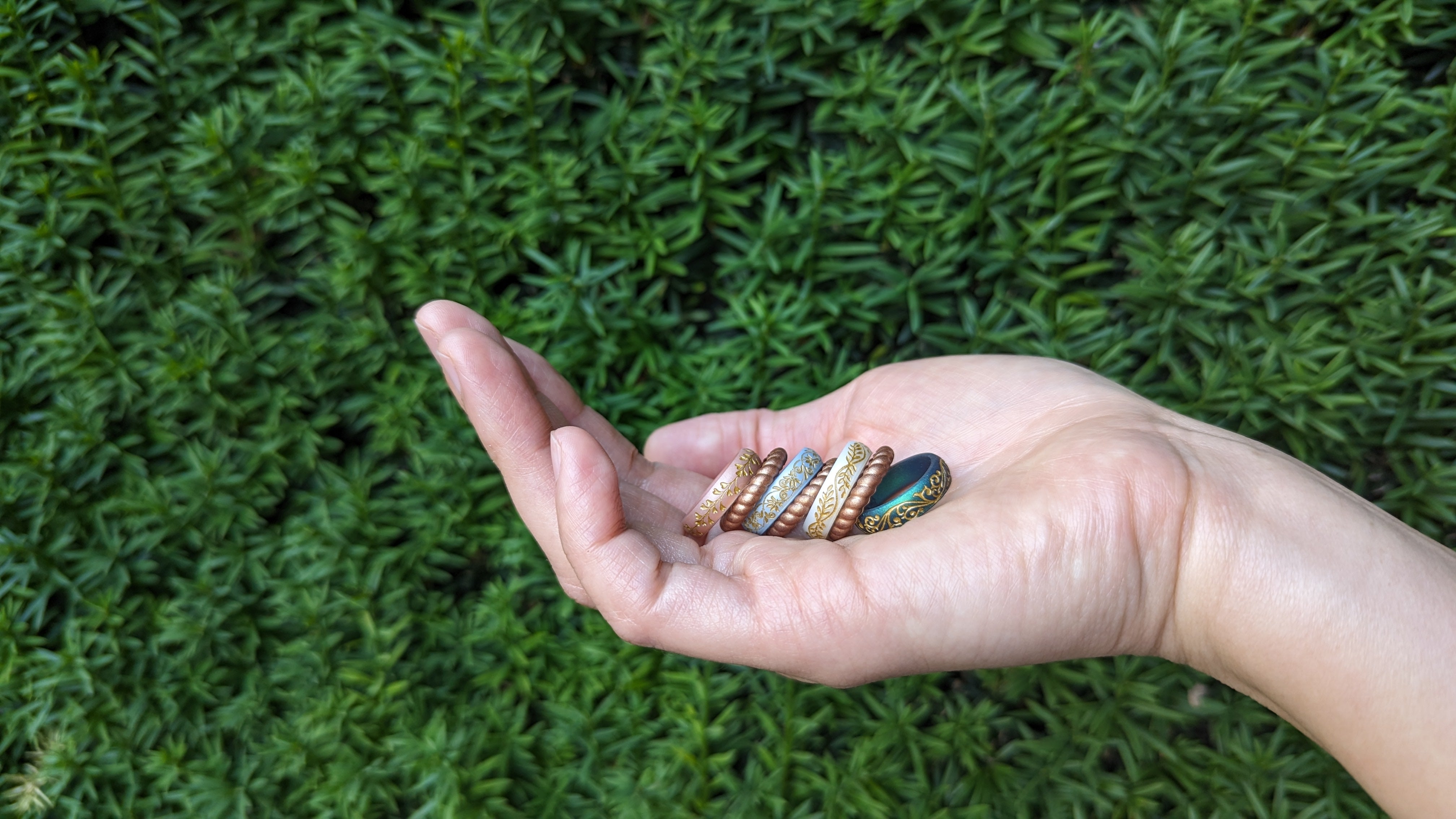 The Olive Green ring offers a more earthy and rustic vibe. Its warm and subtle green hue reflects the beauty of nature's bountiful harvest, grounding you in a connection to the natural world.
