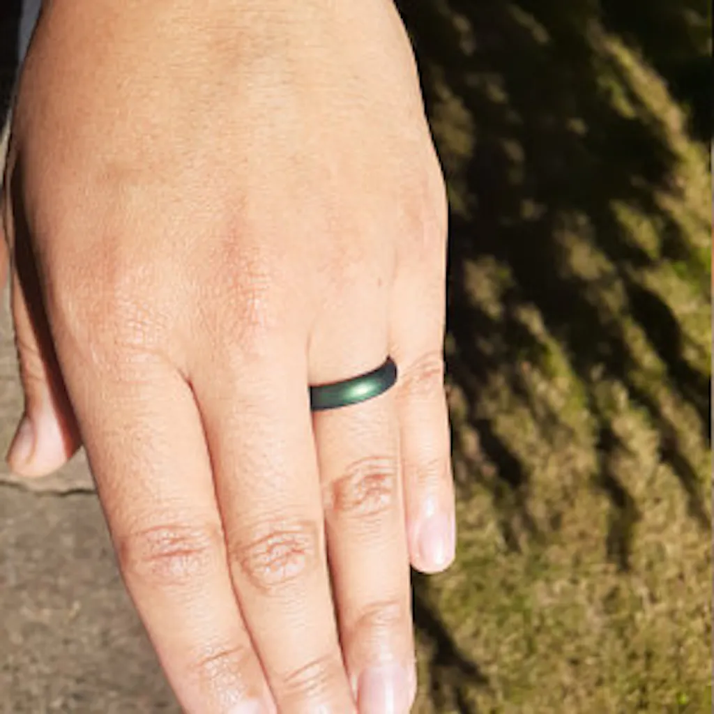 Our Enchanted Green silicone ring is the perfect accessory for those who love nature and want to bring a touch of the outdoors with them wherever they go. The deep 2-toned green color of the ring is reminiscent of a magical forest. The ring is made from durable and flexible silicone, making it perfect for those who adventure in life.