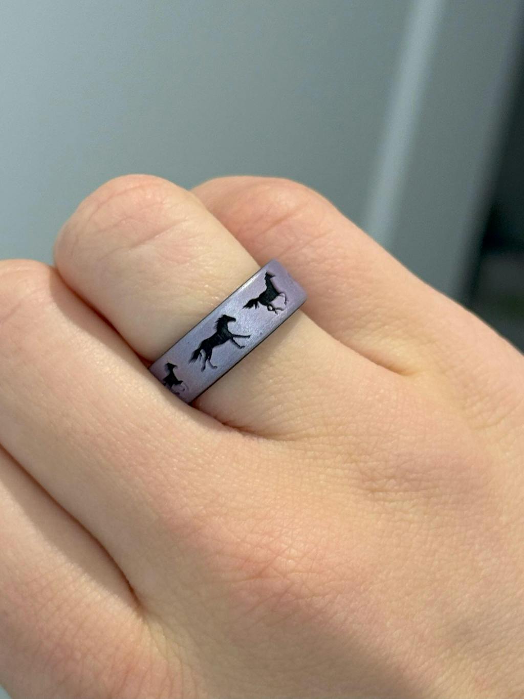 This ring captures the graceful gallop of a horse in stunning detail. A sequence of running horses encircles your fingerālike a flipbook in motionābringing to life the beauty, power, and rhythm of a horse in full stride. Spin it fast enough, and you might just see them run! Designed for those who live for the thrill of the ride and the unbreakable bond between horse and rider.
