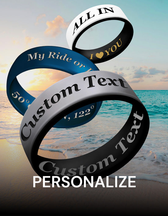 Crafted from 100% hypoallergenic, food-grade silicone, our rings are safe for all skin types. Even our metallic pigments are metal-free. Colors are infused throughout the ring - not just coated - so they stay vibrant, wear after wear.