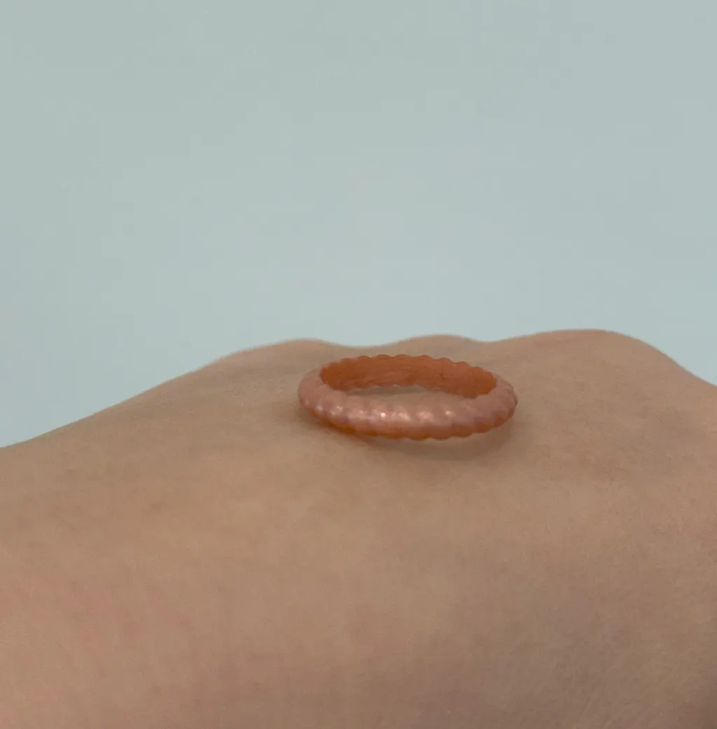 Crafted from 100% hypoallergenic, food-grade silicone, our rings are safe for all skin types. Even our metallic pigments are metal-free. Colors are infused throughout the ring - not just coated - so they stay vibrant, wear after wear.