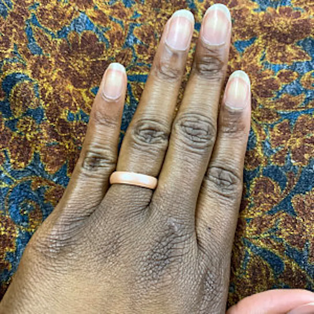The beautiful rose gold ring is a perfect gift for yourself, a friend, or your wife. Available in bandwidths of 4mm and 6mm. The silken surface makes these rings glide onto your finger effortlessly.