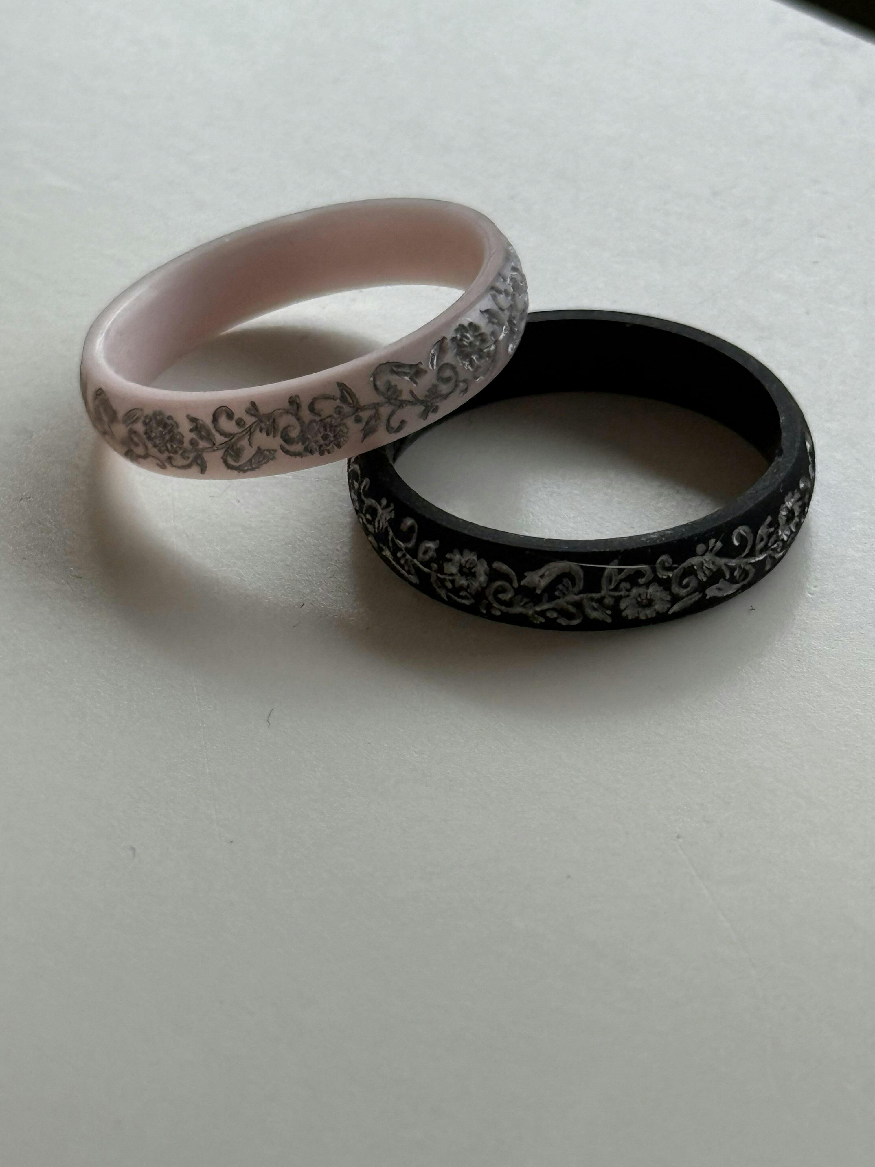 Crafted from 100% hypoallergenic, food-grade silicone, our rings are safe for all skin types. Even our metallic pigments are metal-free. Colors are infused throughout the ring - not just coated - so they stay vibrant, wear after wear.