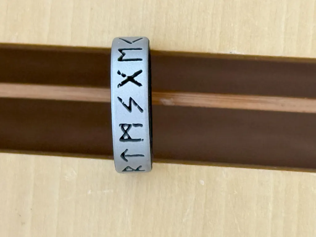 The dual-layer construction adds a unique contrasting pop of color, while the carefully etched runes pay homage to the enduring bond shared by Viking warriors and their loved ones. Wear a piece of history on your finger, and carry its eternal message of love wherever you go.