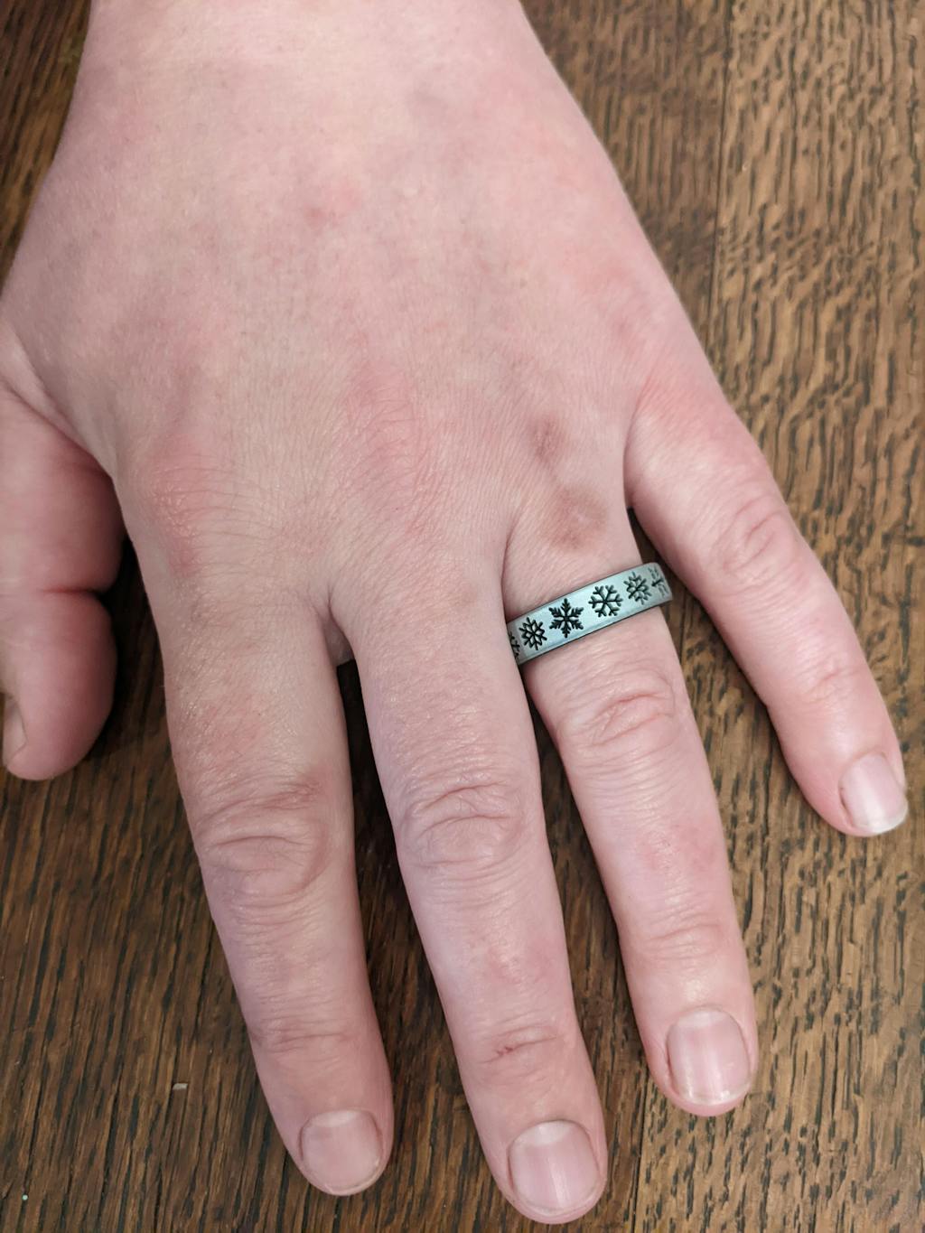Every engraved ring is laser-crafted by our expert team in Canada. For inlaid rings, we hand-paint and heat-cure each one with care and precision.